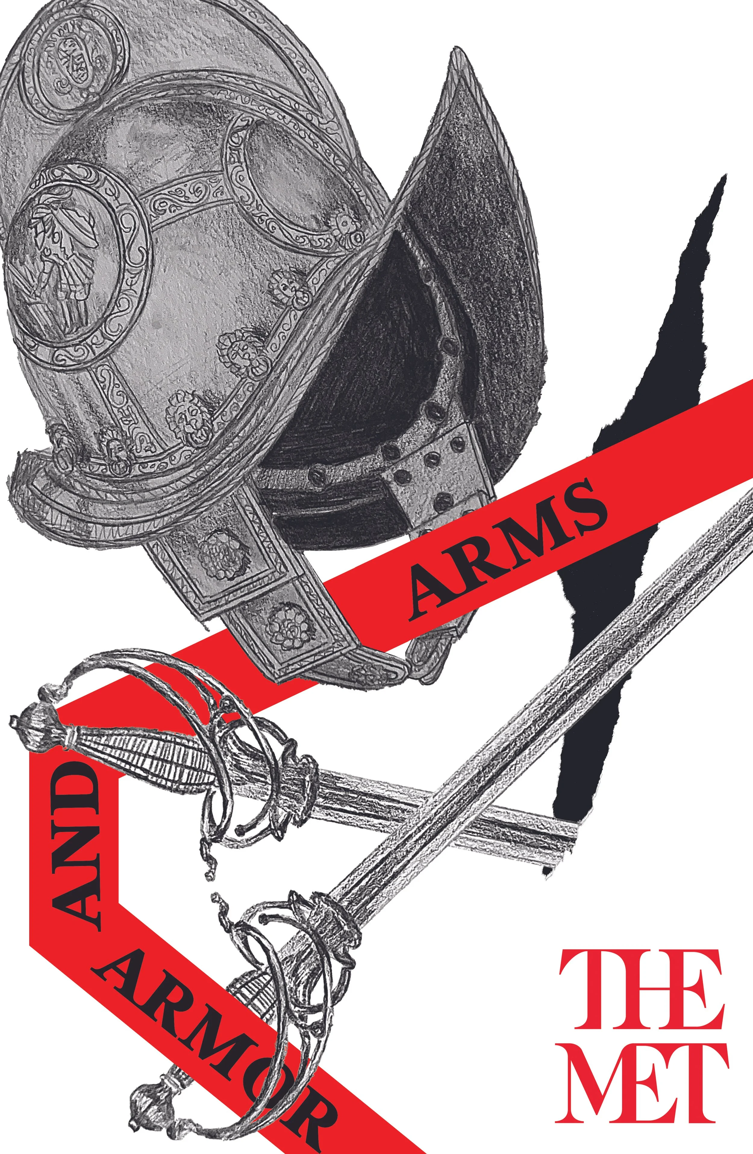 This is an advertisement made for the Arms and Armor section of The Metropolitan Museum of Art. The individually drawn swords and helmet are scans from larger physical graphite works I completed for this project. They depict real artifacts from The Metropolitan Museum of Art’s collection.